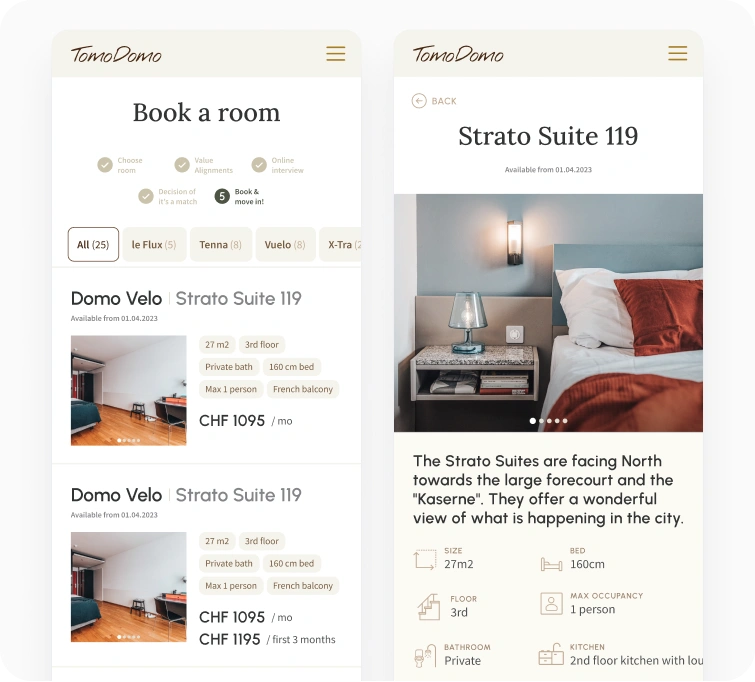 We developed a comprehensive coliving management platform to digitize and automate the entire guest lifecycle — from online applications to room bookings, onboarding, and move-ins. Designed for hospitality operators managing shared living spaces, the platform supports multiple user roles, integrates seamlessly with tools like Wix, Calendly, and Stripe, and offers a multilingual guest experience across English and German.